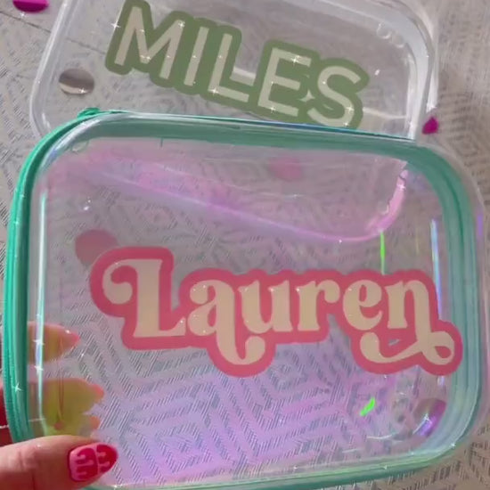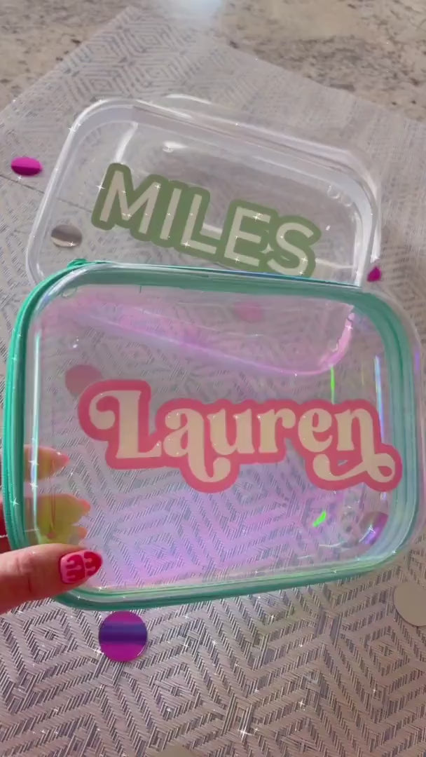 Make back-to-school extra special with a personalized pencil box your child will love! Available in iridescent or clear, this roomy pencil case is customized with your child’s name and designed to keep all their school essentials neat and organized.