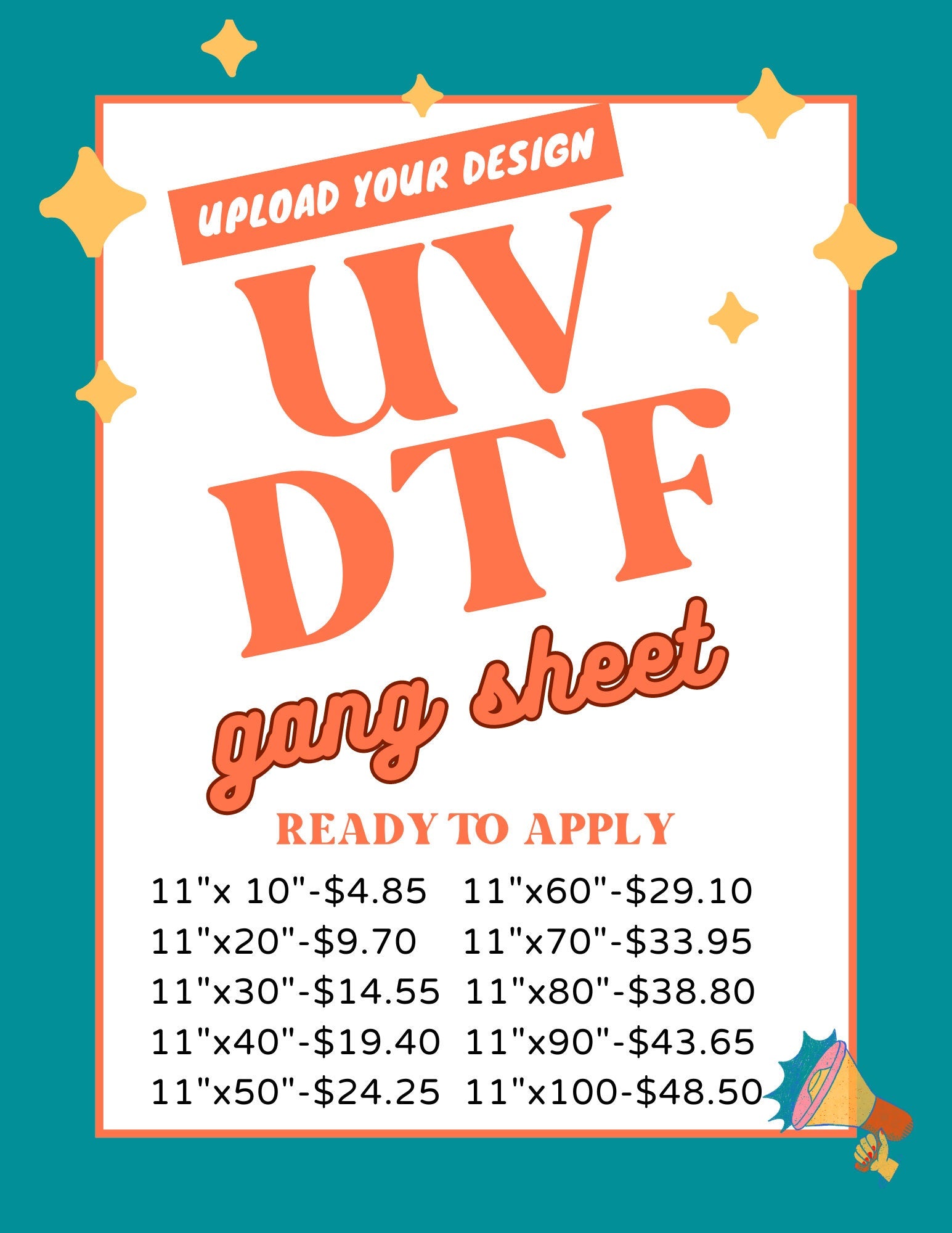 - We’ll print your custom UV DTF gang sheet and ship it ready to use.