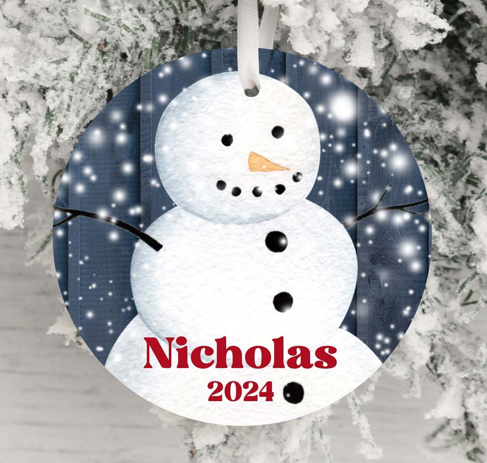 Personalized Blue Snowman Christmas Ornament 2025 – Custom Name & Year for Kids and Adults