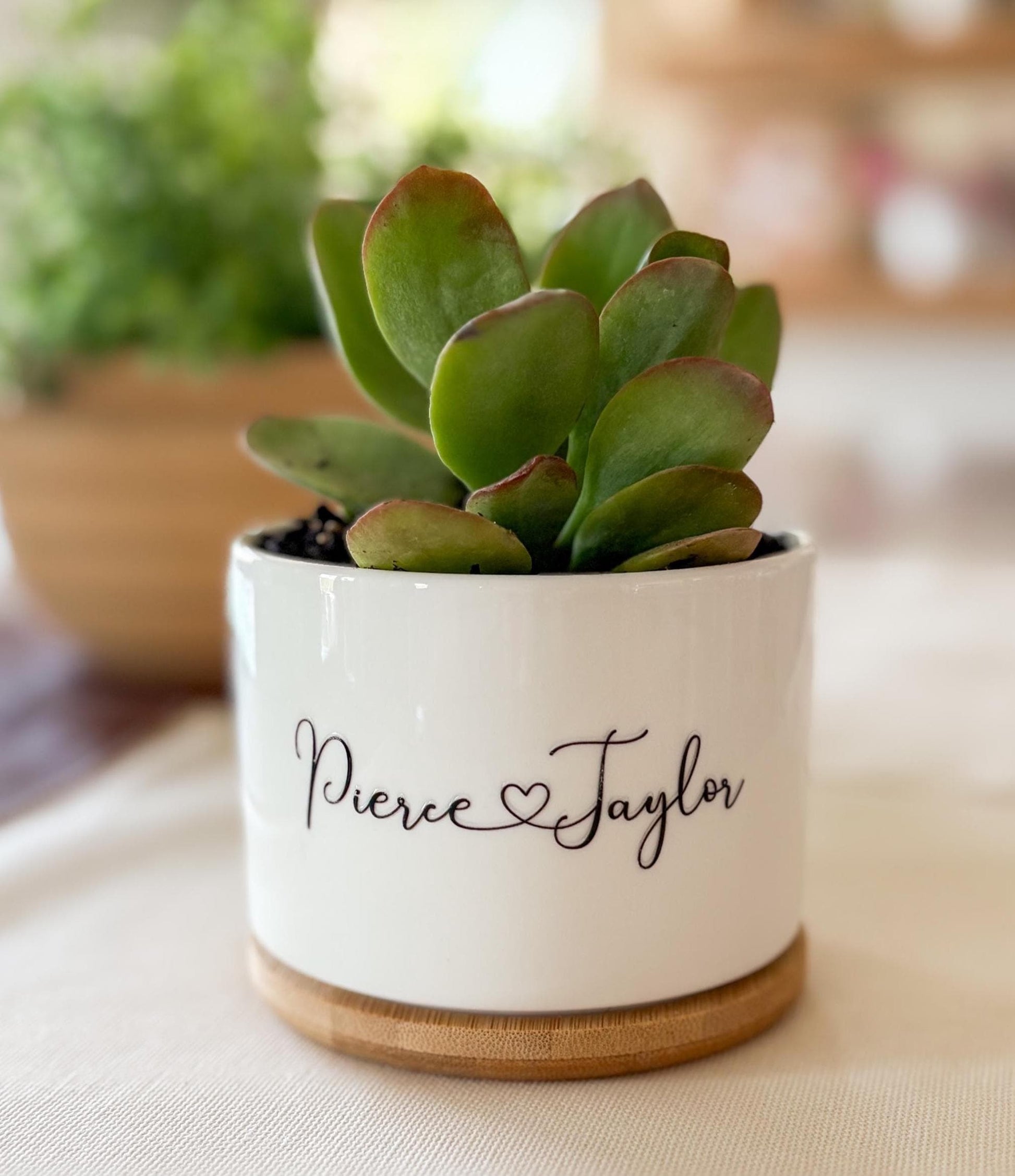 Give your plants a stylish home with this personalized ceramic planter – the perfect gift for plant lovers, coworkers, or even yourself! Personalization is applied using UV printing for a crisp, long-lasting design, making it a unique keepsake or thoughtful gift.
