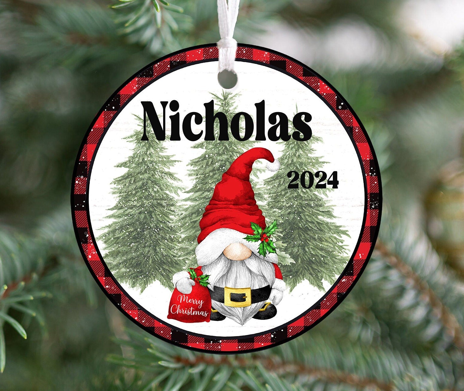 Personalized Gnome Ornament 2025 – Kids & Adults, White Background with Christmas Border