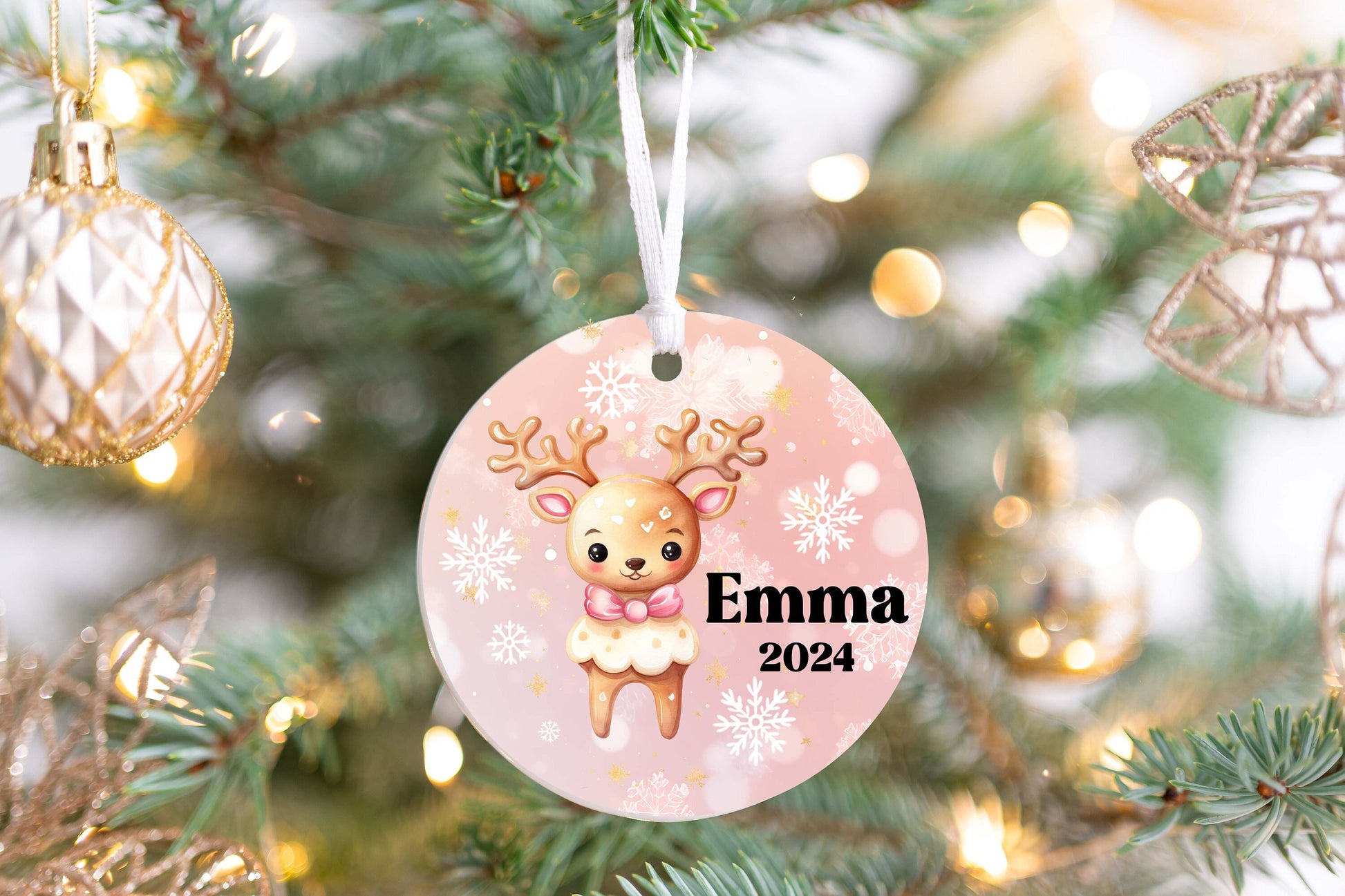 Add a special touch to your holiday tree with this adorable pink reindeer ornament, customized with any name and year! Whether you're decorating your own tree or giving a heartfelt gift, this keepsake will be treasured for years to come.