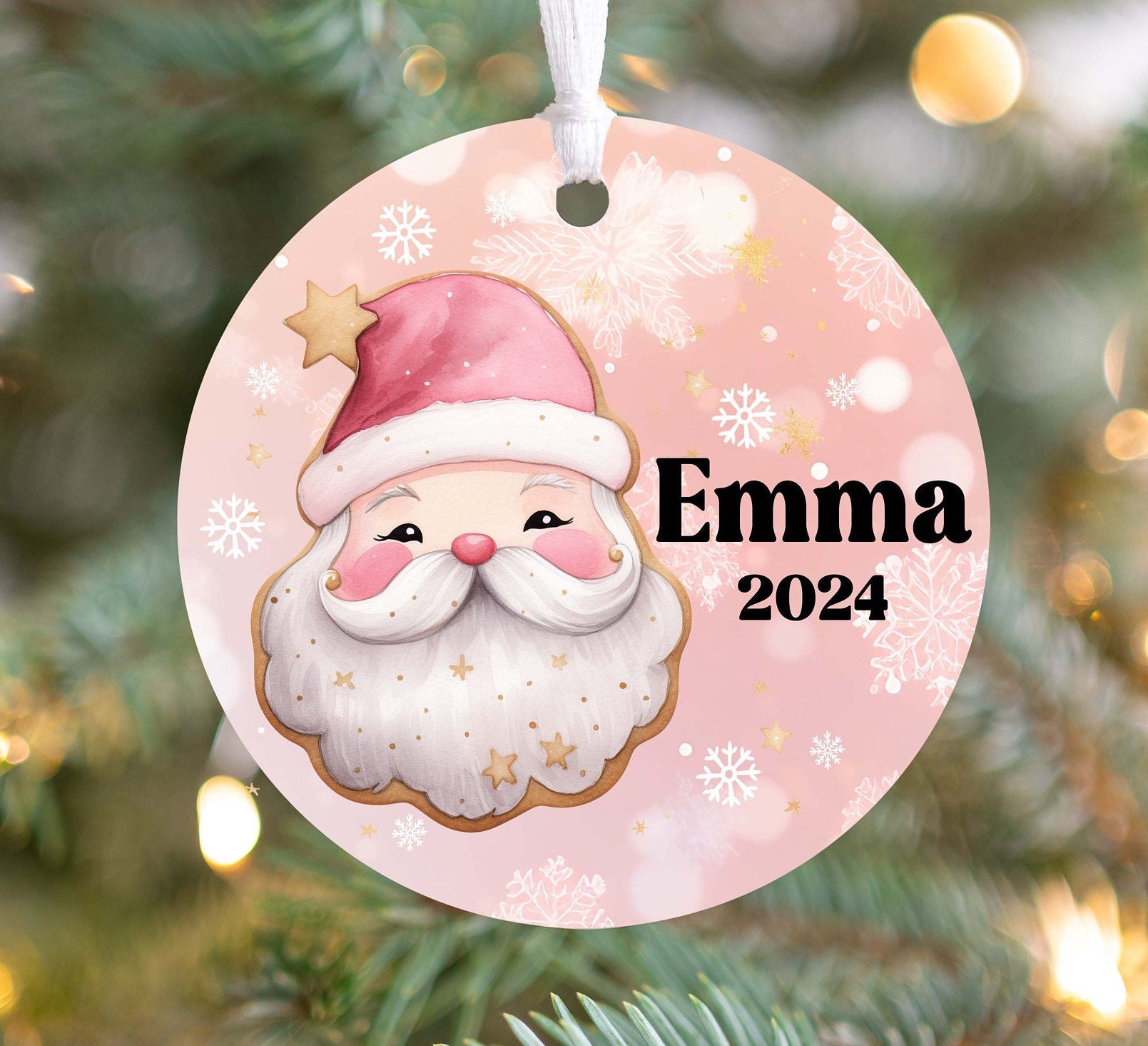 Personalized Pink Retro Santa Christmas Ornament- Custom Name & Year | Aluminum or Hardboard