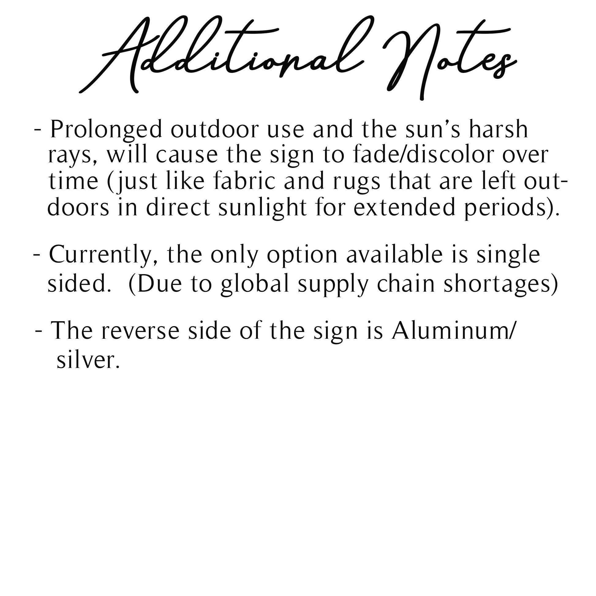 Crafted from durable aluminum and designed with sublimation ink that’s heat-pressed into the surface, this sign won’t crack or warp—making it ideal for both indoor and outdoor use. With pre-drilled holes at the top, it’s easy to hang using zip ties or hooks.